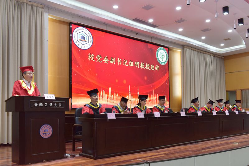 祖明代表学校向顺利完成学业的毕业生表示祝贺,向悉心培养学生的老师表示感谢。他肯定了2023届毕业生在校期间取得的累累硕果表示赞扬,并提出三点希望。一要不忘初心、坚守理想,做逐梦人。要与党同心、与时代同行,向优秀的榜样学习,以一往无前的奋斗姿态投身现代化征程,为全面建设社会主义现代化贡献澎湃的青春力量。二要不忘初心、提升境界,做思考者。要让学习成为一种生活方式和一种精神追求,不断保持思想活力,把心静下来,把责任扛起来,爱岗、敬业、奉献社会。三要不忘初心、砥砺前行,做奋斗者。既要仰望星空,又要脚踏实地,既要开拓进取,又要勇于创新,奋力当好挑战极限的攀登者,让青春在党和人民最需要的地方绽放绚丽之花。