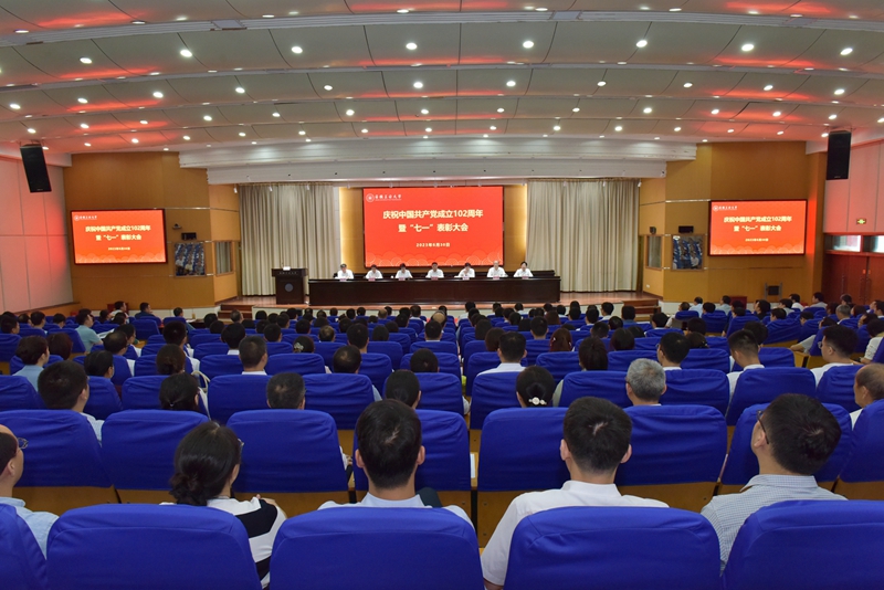 6月30日下午,我校庆祝中国共产党成立102周年暨“七一”表彰大会在佳山校区会议中心四楼报告厅隆重举行。校党委书记陆林带领全体党员重温入党誓词、新发展党员代表入党宣誓,并作了题为《学深悟透 奋进争先 实干先行 以主题教育新成效为学校高质量发展凝心聚力》的讲话。在校校领导、党委常委出席大会。校党委副书记、校长魏先文主持大会。
