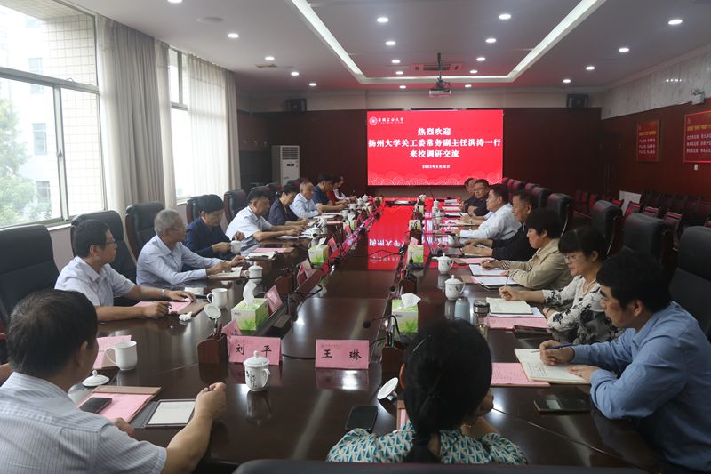 9月25日下午,扬州大学关工委常务副主任洪涛一行来校调研。校党委书记陆林出席,我校机关党委、离退休工作处、关工委、后勤处等部门负责人参加。