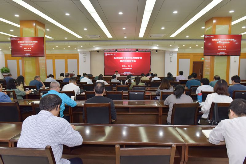 为深入推进学校纪检监察干部队伍教育整顿,进一步提高纪检监察干部党性修养和廉洁自律意识,9月26日下午,学校举办纪检监察干部队伍教育整顿廉政教育报告会,校党委书记陆林作廉政教育报告。校纪委委员,各院级纪委书记、纪委委员,各党总支、直属党支部纪检委员,纪委办公室全体人员参加会议。
