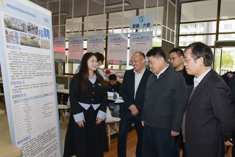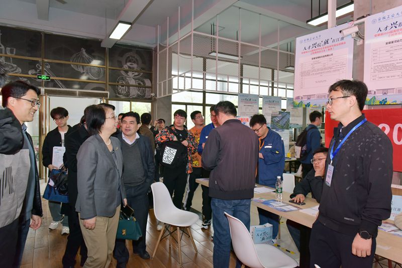 校党委书记陆林,校党委副书记、校长魏先文,校党委常委、副校长顾明言、王先柱、曾杰,安徽省教育厅就业指导中心发展培训部部长刘斌等深入招聘会现场,与求职学生、企业代表亲切交流,了解毕业生求职意向、企业招聘计划及现场招聘情况。学生工作部(大学生就业创业指导中心)负责人,各学院党政负责人、系室主任、班主任以及毕业班辅导员现场与企业对接交流,根据企业招聘需求精准推介毕业生。