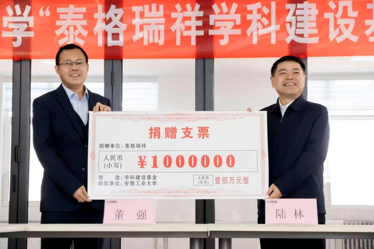 董强校友向母校捐赠100万元,设立“安工大泰格瑞祥学科建设基金”,支持材料科学与工程学院学科建设,推动校企双方合作建设人才培养与就业基地。据悉,2022年7月,董强校友向母校捐赠100万元,设立“泰格瑞祥助学金”,主要用于资助材料科学与工程学院家庭经济困难、品学兼优的学生以及支持学院事业发展项目。(撰稿:杨建 卢祺 审核:孙晓斌 张苒 黄敏)