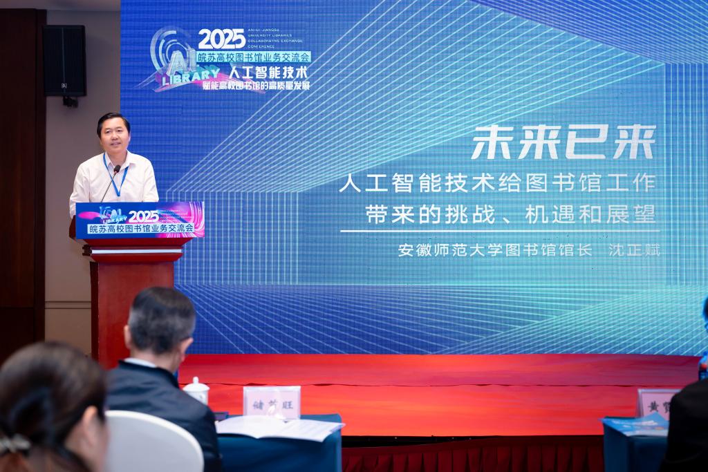 主旨报告环节,储节旺、黄贤金、安徽师范大学图书馆馆长沈正赋、江苏大学图书馆馆长王谦分别作了《数智赋能驱动高校图书馆智慧化转型》《共融共促赋能高标准高教强省建设—2024年江苏省高校图工委工作报告与展望》《未来已来:人工智能技术给图书馆工作带来的挑战、机遇和展望》《“AI+X”人工智能技术应用模式探索》的报告。