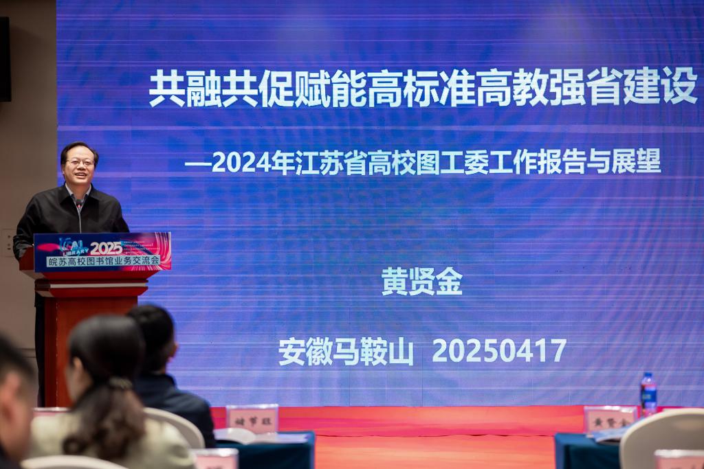 4月17至18日,由安徽省高等学校图书情报工作委员会、江苏省高等学校图书情报工作委员会联合主办,我校承办的2025皖苏高校图书馆业务交流会举办。副校长郑啸,江苏省高校图工委秘书长、南京大学图书馆馆长黄贤金,安徽省高校图工委秘书长储节旺出席,苏皖两省高校图书馆馆长、业务骨干50余人参加。活动由安徽省高校图工委常委、我校图书馆馆长高敏主持。