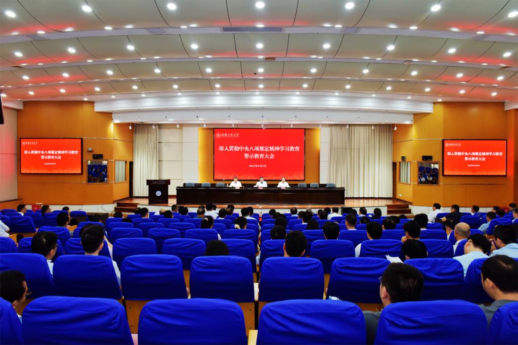 6月9日上午,学校召开深入贯彻中央八项规定精神学习教育警示教育大会,校党委书记陆林主持会议并作题为《坚持以案为鉴 从严查摆整治 锲而不舍贯彻落实中央八项规定精神》的讲话。校党委副书记、校长曾杰传达学习了中央党的建设工作领导小组和省委关于集中整治违规吃喝问题的文件、会议精神,校党委副书记王俊通报了省、市深入贯彻中央八项规定精神学习教育相关会议精神和违反中央八项规定精神典型案例。