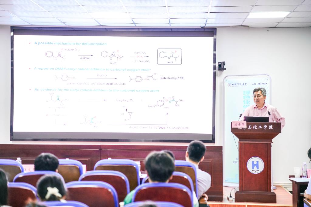 大会报告环节,中国科学技术大学汪义丰教授作了主题为“硼自由基介导的碳-杂键选择性活化研究”的报告,介绍了当今硼自由基介导反应最新国际前沿和最新研究成果。