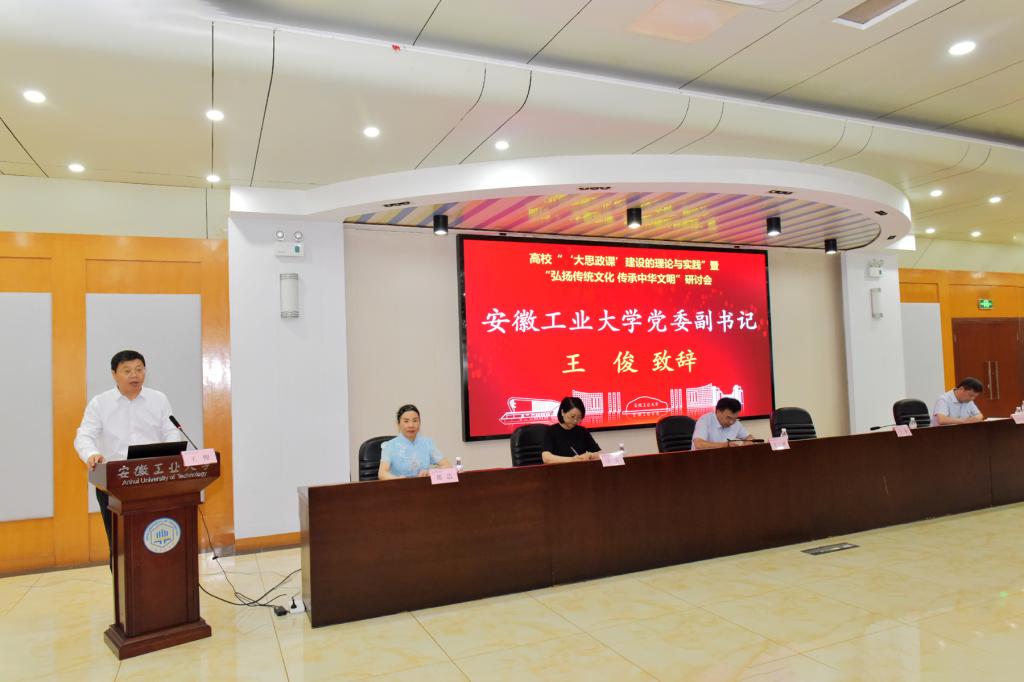 王俊介绍了学校的历史变迁、文化积淀、改革创新,特别是深度参与安徽“三地一区”建设和长三角一体化协同创新情况。他指出,学校深入贯彻落实习近平总书记对学校思政课建设作出的重要指示精神,高质量筑牢“大思政课”课堂阵地、高水平搭建“大思政课”资源平台、高标准建强“大思政课”师资队伍,取得了显著的成效。希望与会专家学者共同探索新时代“大思政课”建设的创新路径,推动思政课建设与中华优秀传统文化深度融合。