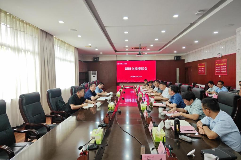 王俊对章平一行来校调研表示欢迎,对省教育厅给予我校各项工作的关心支持表示感谢,并重点介绍了学校在办学条件、学科建设、项目申报、行业特色高校等方面的举措和成效。他指出,今年5月学校第五次党代会胜利召开,明确了今后5年乃至更长一个时期全面实施“九大行动”、力争实现“九个跨越”的重点任务,在稳步提高资源配置效益、着力完善服务保障机制、保障学校重点项目资金需求、加快校园基础设施建设、老旧宿舍进行升级改造等方面作出了具体部署。希望省教育厅给予学校更多的支持指导,助力学校稳步朝着国内一流特色高水平大学建设目标迈进。