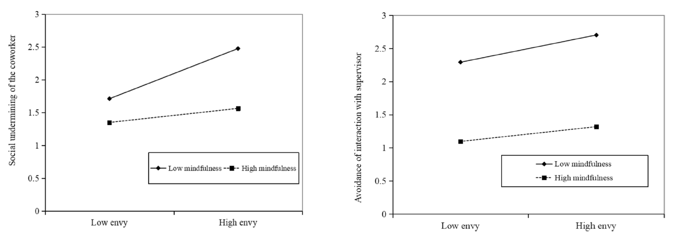 (Study 2:观察者嫉妒与正念对同事社会破坏和领导互动回避的交互效应)