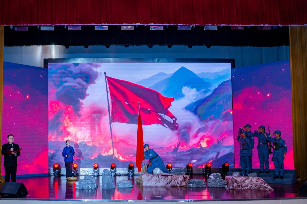 马克思主义学院师生表演的情景剧《薪火照江淮·谢氏三兄弟》,以艺术形式再现红色记忆,引发强烈共鸣。全体齐唱《歌唱祖国》将现场气氛推向高潮。(撰稿:张立成 审核:陈光华 李波 张苒 黄敏)