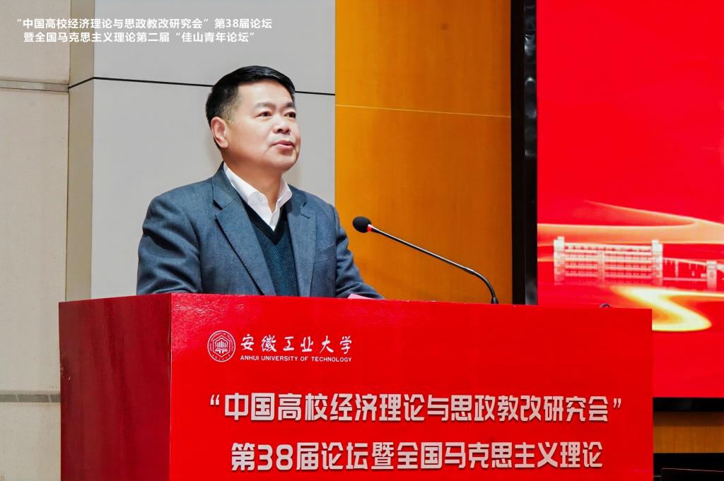 11月22日,由中国高校经济理论与思政教改研究会和安徽工业大学联合主办的“中国高校经济理论与思政教改研究会”第38届论坛暨全国马克思主义理论第二届“佳山青年论坛”举办。中国高校经济理论与思政教改研究会会长、哈尔滨工业大学马克思主义学院教授徐丰臻、校党委书记陆林出席,来自复旦大学、浙江大学、武汉大学、哈尔滨工业大学、厦门大学、西南大学、中国社会科学院、南开大学等高校的近200名专家学者和师生代表参加。