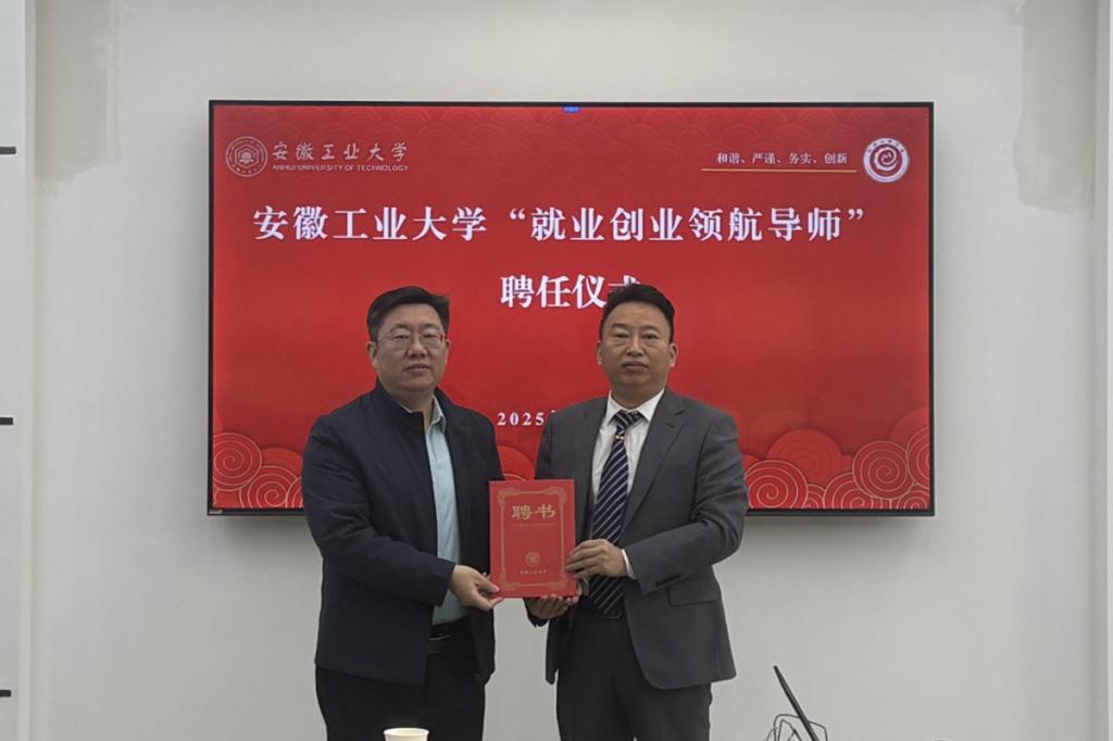 仪式上,张世宏代表学校为胡顺利颁发“安徽工业大学就业创业领航导师”聘书。他指出,就业是最基本的民生,而领航导师正是连接校园与职场、理论与实践的重要桥梁。领航导师拥有产业一线的实战经验和对行业发展的深刻洞察,他们的加入,有助于破解科研与产业脱节的问题,培养适应新质生产力需求的人才。希望机械工程学院做好服务保障,建立常态化沟通机制,将导师资源切实转化为育人成效,为服务安徽省战略性新兴产业、推动国家制造业高质量发展贡献更大力量。