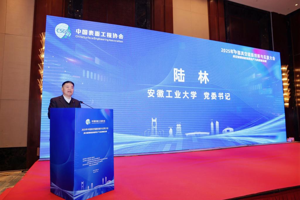 陆林致开幕辞,介绍了学校的基本情况以及在服务国家重大战略和区域经济社会发展方面作出的积极贡献。他指出,党的二十届四中全会为加快实现科技自立自强、发展新质生产力指明了方向。学校依托ISO/TC107/SC9物理气相沉积涂层国际标准分委会、先进金属材料绿色制备与表面技术教育部重点实验室等平台,聚焦真空镀膜关键技术与应用研究,产出了一批具有重要影响力的创新成果。本次大会与我校材料科学等学科布局高度契合,将为相关领域科研创新、人才培养、产学研合作注入新的动力。期待与会专家学者深入交流,共同探索科技前沿、突破关键技术、推动产业发展,为中国表面工程科技进步贡献力量。
