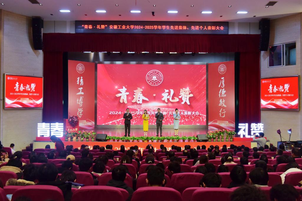 12月26日下午,我校2024-2025学年“青春·礼赞”学生先进集体、先进个人表彰大会在秀山校区大学生活动中心举行。校领导陆林、曾杰、王俊、吴春雷、闵凡飞、郑利平出席,校党委常委,相关职能部门负责人,各学院党委书记、院长、党委副书记、辅导员、教师代表,校友、就业创业领航导师代表,宿舍管理员、保安员、家长代表,受表彰的先进集体、先进个人以及各学院学生代表等共600余人参加。表彰大会由校党委副书记王俊主持。