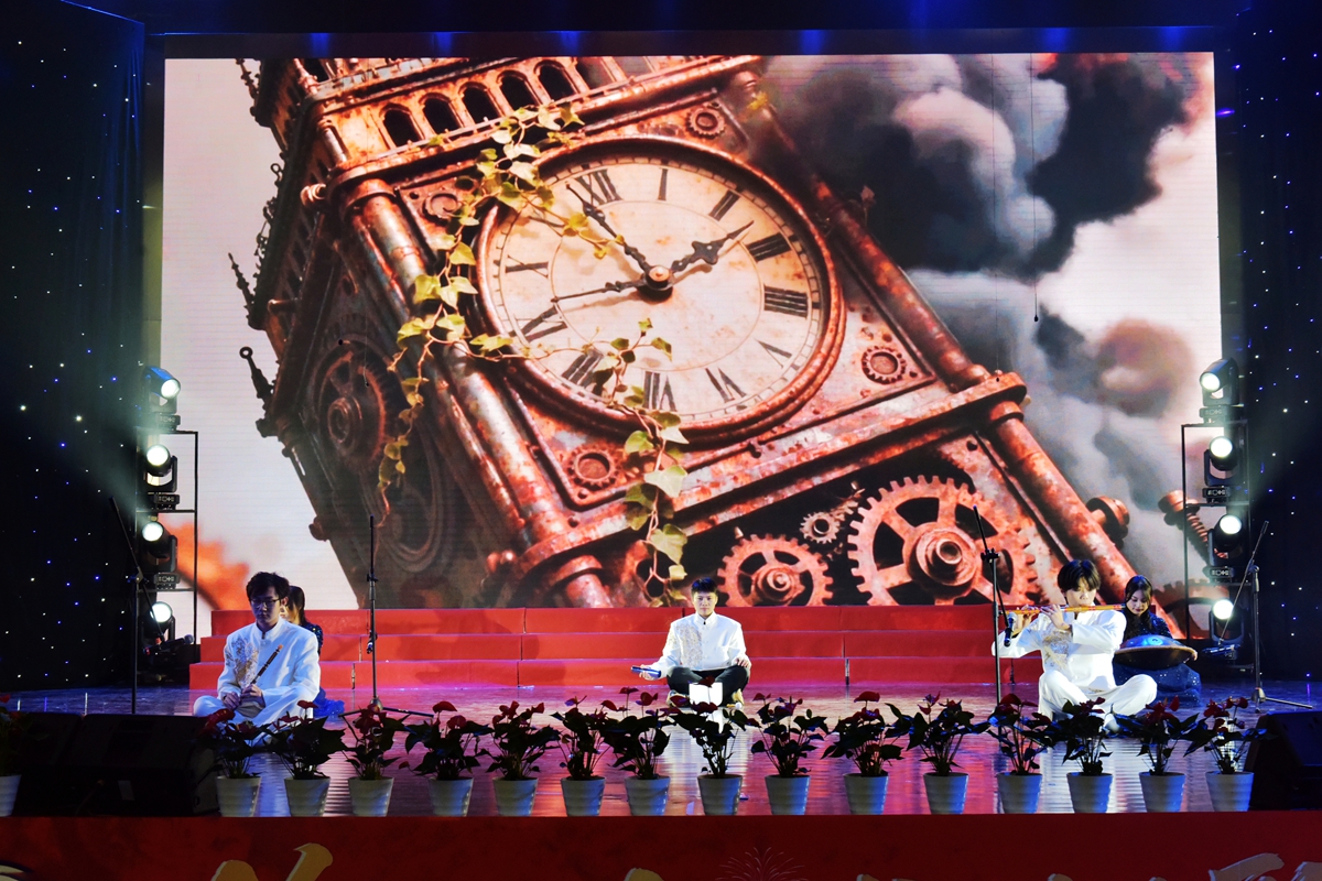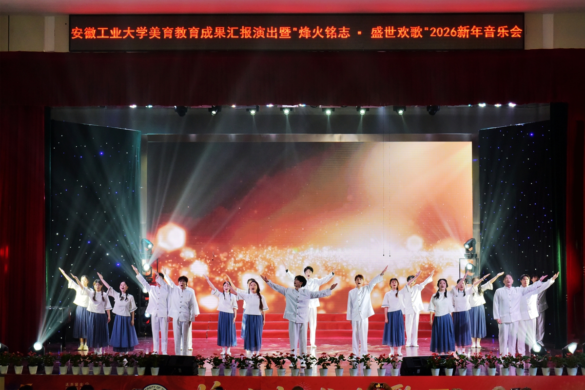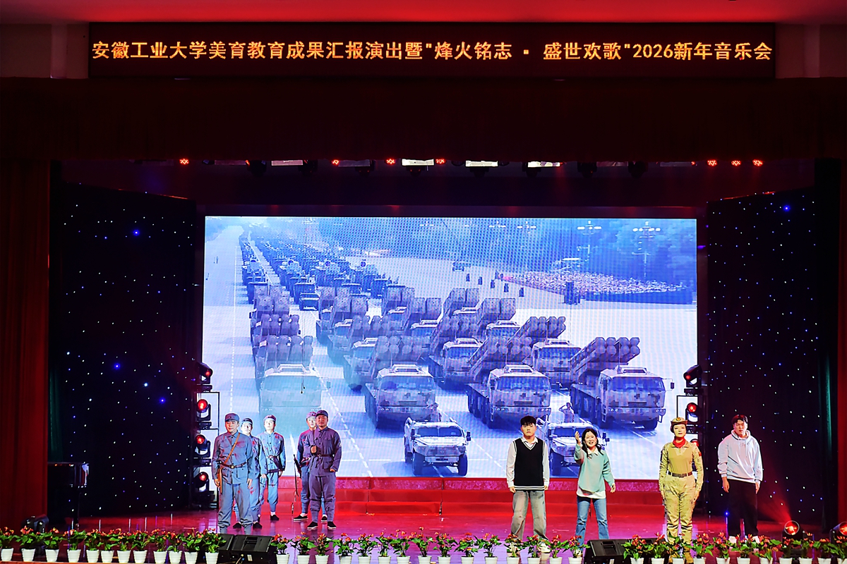12月29日晚,安徽工业大学美育教育成果汇报演出暨“烽火铭志·盛世欢歌”2026新年音乐会在秀山校区大学生活动中心浓情上演。校领导曾杰、王俊、郑啸、吴春雷、闵凡飞、郑利平、张世宏出席,校党委常委,相关职能部门、学院党政负责人,兄弟学校音乐协会嘉宾,美育共建单位、优质生源基地中学代表以及师生代表共同观看。