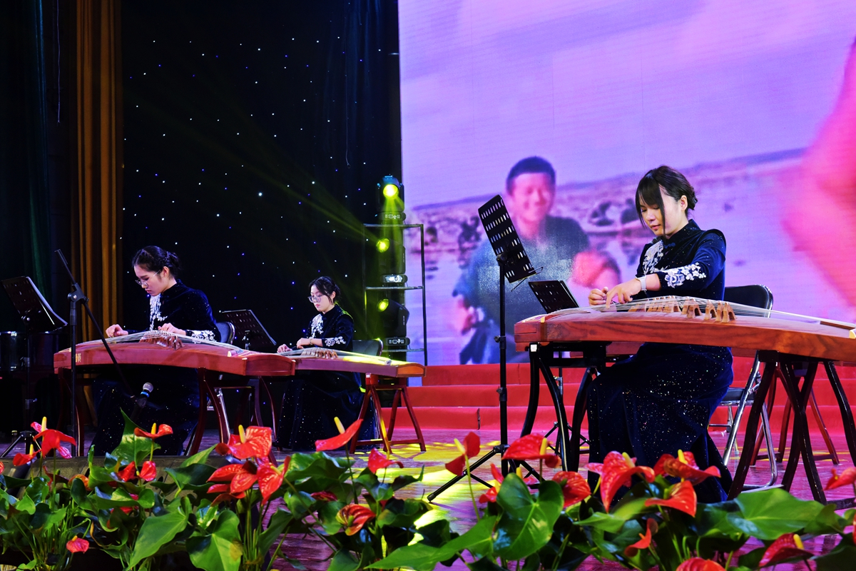 音乐会在庄严恢弘的交响序曲《在太行山上》中拉开帷幕。安徽工业大学交响乐团倾情演绎钢琴协奏曲《黄河颂》,激昂的旋律传递出中华民族不屈的精神力量;AI艺术小品《追思》以科技融合艺术的方式,创新表达对英烈的深切缅怀;古筝合奏《洪湖颂》、二胡齐奏《游击队歌》等经典曲目,再现革命年代的豪情与智慧;特邀嘉宾俄罗斯男低音歌唱家安德烈·布拉霍夫斯基深情献唱《莫斯科郊外的晚上》《喀秋莎》,Vida室内乐团演绎《辛德勒的名单》《闲聊波尔卡》,传递跨越国界的和平之声。国家级非遗传承人陶小妹带来的当涂民歌,彰显马鞍山地域文化的深厚底蕴。音乐剧《跨越时空的军礼》、流行歌曲联唱、大合唱《我们的新时代》等,深情抒发师生奋进新征程、建功新时代的青春信念与使命担当。