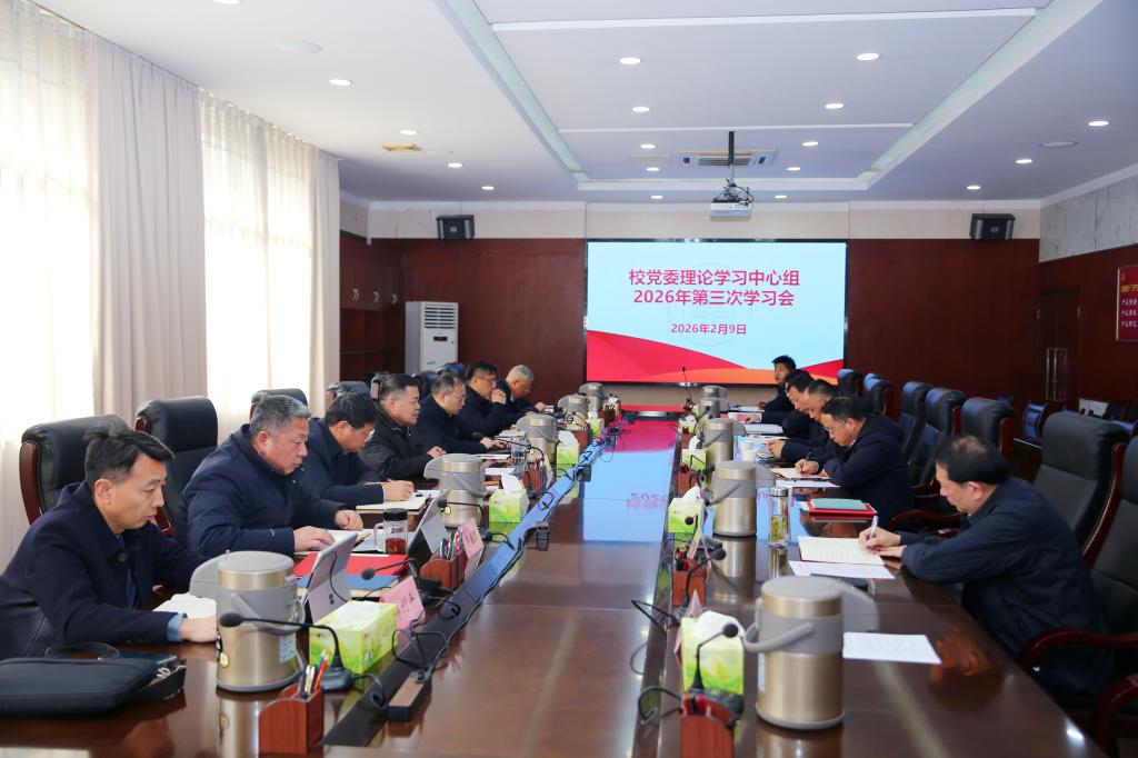 2月9日上午,校党委理论学习中心组召开2026年第三次学习会。校领导,校党委常委,纪委办公室、研究生工作部、教师工作部主要负责人参加。校党委书记陆林主持会议。