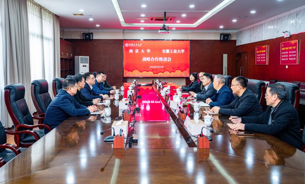 索文斌表示,南京大学与安徽工业大学山水相依、情谊绵长,近年来在国家战略需求和区域经济布局的牵引下密切交流、多维互动,以开阔思路和务实举措推动战略合作协议落地见效,赢得了社会广泛赞誉。索文斌强调,面向未来,希望两校推动战略合作提质升级,开创共赢发展新局面。要在提升办学实力上聚智聚力,围绕优势特色学科融通、高端科研平台团队共建、关键核心技术协同攻关等方面持续发力,不断提升两校服务“大国重器”的支撑力贡献力。要在培育时代新人上同心同向,建立两校青年思想引领、创新创造、实践锻炼的常态化联动机制,引导两校学子既在专业上“深耕”,更在信仰上“铸魂”,在互学互鉴中心系国家事、肩扛国家责。要在传播精神文化上互联互通,依托匠心对话、经典传诵、艺术展演、名家讲坛等载体,促进两校精神价值理念深度交融,高质量推进科技教育与人文教育协同发展,让既有科学精神、又有人文情怀成为师生的共同追求。要在助力现代化产业体系建设上共建共享,聚焦经营性国有资产管理、校办产业规范运营、科技成果市场化运作等方面开展经验共享、模式共建,促进两校创新资源高效联动,提升成果转化率与经济效益。