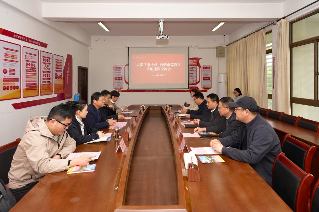 王俊代表学校对王义一行表示欢迎,对合肥市及瑶海区长期以来为我校毕业生提供优质就业岗位、搭建人才发展平台表示感谢,并简要介绍了学校办学历史、学科建设、人才培养等情况。王俊指出,当前学校专业布局与合肥市战略性新兴产业高度契合,希望进一步加强校地资源对接、人才供需衔接,为合肥市及瑶海区重点产业发展输送更多高素质应用型人才,实现校地优势互补、互利共赢。