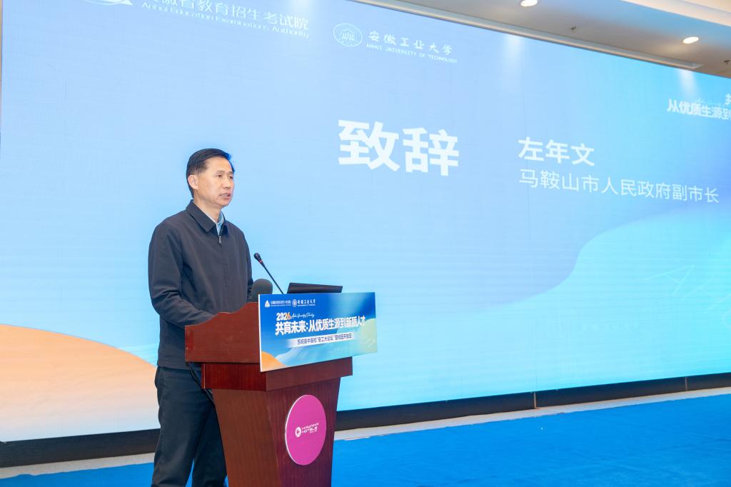 左年文代表马鞍山市政府对论坛的举办表示祝贺。他指出,安工大论坛持续扩大苏皖教育“朋友圈”,架起了区域教育合作的坚实桥梁。马鞍山市将以论坛为新起点,深化市校融合与产学研协同,推动教育链、人才链、创新链、产业链深度融合,携手苏皖两地,共筑育人桥梁,共拓发展空间,聚力共育拔尖人才,赋能教育协同高质量发展。