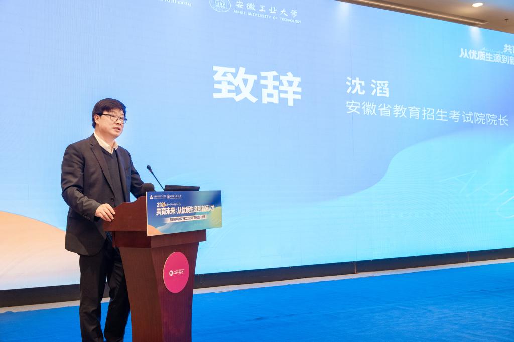 王俊代表学校向莅临论坛的苏皖两省高中高校各位嘉宾表示欢迎,向长期以来关心支持学校建设发展的优质生源高中、兄弟高校,向安徽省教育招生考试院、马鞍山市委、市政府表示感谢。他指出,苏皖高中高校“安工大论坛”已经连续举办四届。四年来,我们深耕苏皖教育协同发展沃土,跨越地域阻隔、打通学段壁垒,始终牢牢把握立德树人根本任务,紧紧围绕优质生源衔接、拔尖人才培育、新质人才成长这条主线,持续探索、久久为功。以论坛为纽带,我校搭建高中与高校沟通桥梁,畅谈育人共识、共享教育资源、共研培养路径,推动基础教育与高等教育有效衔接、同频共振。学校将以本次论坛为新起点,精准把握新高考人才选拔新要求,持续优化学科专业布局与招生策略,不断深化高中高校协同育人机制,强化招生宣传与升学服务,与各兄弟高校、优质高中携手并肩,扎实做好2026年高考招生各项工作,共同护航广大考生金榜题名、圆梦理想学府,合力书写长三角基础教育与高等教育一体化高质量发展的崭新答卷。