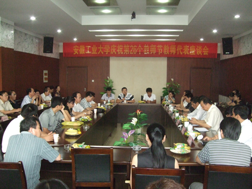 座谈会上,来自全校14个教学单位的33名教师代表相聚一堂,畅所欲言,大家为学校教育教学和师资队伍建设工作建言献策,为学校改革发展中遇到的困难与问题寻找机遇与对策,以直抒胸臆、开怀畅谈的方式庆祝自己的节日。参加座谈会的教师代表有从教几十年的老教授,更多的是年轻教师,不少还是来校不久的博士生,他们就各自的专业从不同角度对学校方方面面的工作提出建议:管理学院章铁生、冶金学院刘小芳等老师认为学校关键的问题就是人的问题,建议在引进人才的同时更注重培养和使用的问题;冶金学院龙红明、外国语学院周家春等老师希望学校重视学术平台建设,为广大教师提供施展才华的舞台;建工学院盛广宏、钟梅英老师、机械学院孙宝强、数理学院孙文斌等老师对学校实验室建设中的一些问题提出各自的看法和建议;文法学院戚枝翠老师呼吁学校在科研经费投入上多关注文科学科。代表们的言语里充满了作为安工大人对学校建设与发展的关心和期盼。