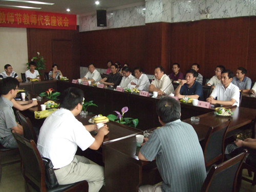 9月10日下午,我校庆祝第26个教师节教师代表座谈会在校学术会议中心召开。校领导李辉生、岑豫皖、李家新、林钟高、汪光阳、陈润、张国宝,各教学单位的教师代表以及有关职能部门的负责同志出席会议。座谈会由校长岑豫皖主持。