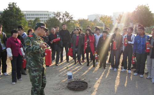 11月8日下午,由保卫处牵头,会同学工部、校团委于在东校区六餐厅四楼大学生活动中心,聘请市消防支队防火专家汪李耀给各学院学生宿舍治保委员、后勤集团各宿舍楼管理员、全校教学楼管理员、学校志愿消防队员300余人进行消防安全知识专题讲座。汪工程师从了解消防基本常识,从如何做好消防安全工作,遇到各类火情如何处置、灭火、逃生等三个方面着手,穿插与学校消防相关的影像资料,给师生员工进行了生动讲解,取得良好的教育效果。讲座结束后,学校还组织了现场灭火演练。市消防支队官兵还在室外现场讲解和示范了灭火器的构造和使用方法,志愿消防队员还进行了实际操练,从而提高了志愿消防队员的防灾救火的能力。