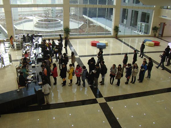 新馆试运行当天,共接待读者12399人次,借还书13893册。为方便读者,图书馆通过大厅导引牌、LED显示屏、多媒体终端及新馆读者指南宣传单等多种形式为读者提供资源与服务导引。相关部门及有关领导现场协调,确保新馆平稳运行;图书馆各业务部门均抽调人力,担任新馆导引工作;管工学院40名志愿者在各楼层维持秩序。