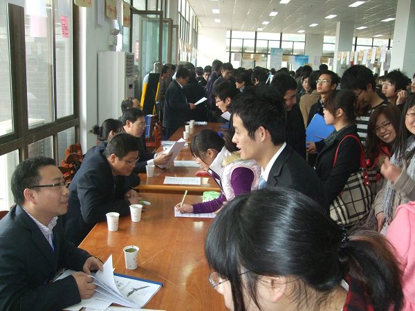 本次就业市场共提供8000个岗位,比去年同期增长54%,其中经管文类的专业需求占到52%。开场前半个小时,毕业生分别在三个会场自觉排队,秩序井然进入会场。在招聘现场,很多展位前被应聘同学围得水泄不通。毕业生积极向用人单位投递求职材料、填写表格、现场面试,着力展示自己、推销自己。用人单位则通过提前召开宣讲会、现场讲解、资料宣传等方式向毕业生介绍公司的情况。经过双向选择洽谈,我校有500多名毕业生现场与用人单位签订了就业协议,有1200多名毕业生与用人单位达成了就业意向,主要集中在计算机、经济、管理和文法等文科类专业。