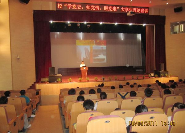为纪念建党90周年,引导广大青年学生认真学习中国特色社会主义理论体系,坚定理想信念,5月8日下午,我校在新大学生活动中心举行“学党史、知党情、跟党走”大学生理论宣讲活动。学工部、校团委负责人,相关老师和各学院学生代表共500余人参加了活动。