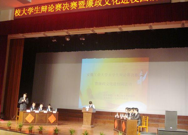 在冠军争夺赛中,电气学院和文法学院代表队围绕“反腐倡廉应更注重道德修养还是制度建设”的辩题展开巅峰对决。比赛现场气氛紧张热烈,双方代表队陈词立论观点鲜明,攻辩阶段步步紧逼,针锋相对,自由辩论舌灿莲花,总结陈词慷慨激昂。现场观众被双方灵活多变的辩驳和犀利机智的言语深深折服,把赛场气氛一次次推向高潮。文法学院代表队最终摘得桂冠,电气学院代表队屈居亚军。
