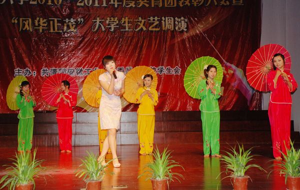 5月29日晚,我校新大学生活动中心华灯闪烁、歌舞蹁跹。由校团委、校学生会主办的2011年“风华正茂”大学生文艺调演在这里隆重举行。全校各学院师生代表500余人观看了演出。