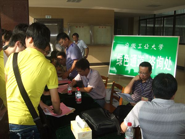 9月3日上午是新生报到的高峰期,校党委书记兰玉杰率校全体党政领导以及党办、校办和学工、后勤等部门负责人,先后来到两校区迎新报到点和火车站接站点,慰问参加迎新接待工作的各单位、部门工作人员,对大家的辛勤付出表示肯定和感谢。在报到现场,校领导检查了学生资助“绿色通道”的办理情况,现场办理秩序有条不紊,看到不少家庭经济困难同学通过“绿色通道”解决了入学之忧,校领导鼓励在场的家庭经济困难同学克服暂时困难,努力学好专业知识,把自己培养成社会的有用人才。在接受安徽教育网记者采访中,兰玉杰书记介绍了我校学生资助工作的特色做法和经验。