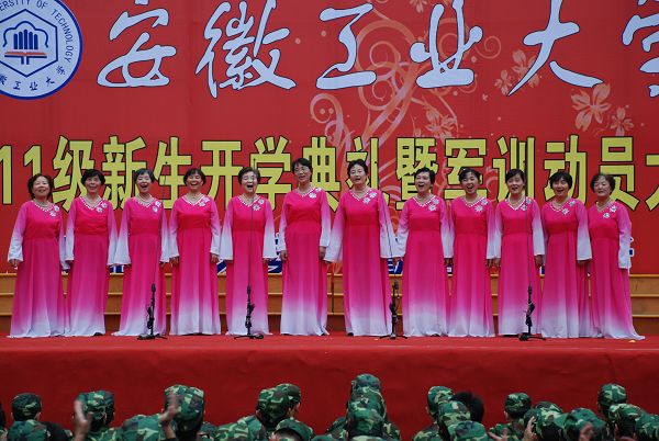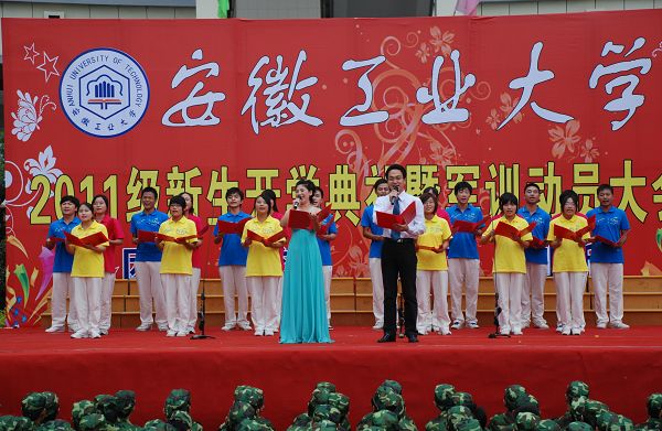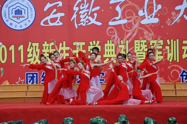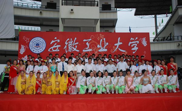 9月6日下午,我校2011年开学典礼暨迎新文艺演出在东区主教广场隆重举行。校领导兰玉杰、李家新、林钟高、汪光阳、陈润、张国宝、魏先文,各学院负责人,武警马鞍山市支队承训教官以及4900余名新生观看了演出。演出结束后,校领导亲切慰问了演职人员并合影留念。