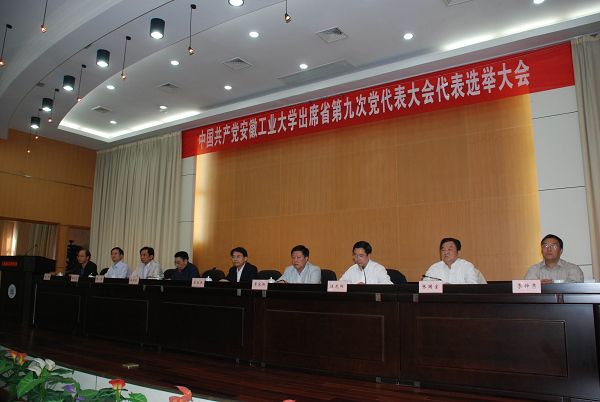 中国共产党安徽工业大学出席省第九次党代表大会代表选举大会于9月23日下午在校会议中心隆重召开。校领导兰玉杰、李家新、林钟高、汪光阳、陈润、张国宝、魏先文,校党委常委季钟秀、刘明出席会议并在主席台就座,校第二届党代会正式代表参加了会议。大会由校党委副书记汪光阳主持。