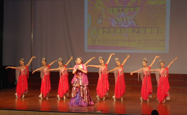 10月9日晚,我校新大学生活动中心华灯闪烁,歌舞飞扬。马鞍山市艺术剧院的艺术家们为我校师生送上了一台精彩的歌舞晚会。各学院老师学生共500余人观看了演出。