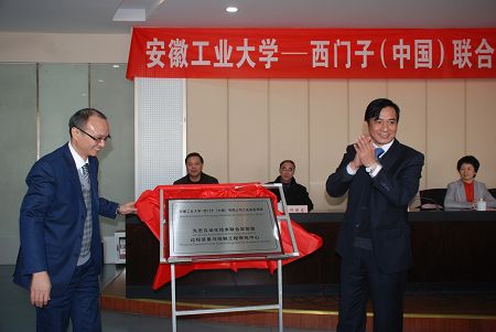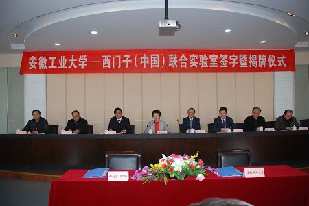 王晓焱在讲话中充分肯定了安徽工业大学长期以来坚持走开放办学和产学研用相结合的特色兴校之路,在积极探索校企合作新模式的同时,与行业龙头企业、地方骨干企业建立了更紧密、持久、长效的合作关系,在推进马鞍山地方经济发展中的发挥了积极作用。她相信,通过安工大与西门子的真诚密切合作,“联合实验室”的建设一定会达到互惠双赢、共同发展的目的,一定会为校企合作培养人才做出新贡献、进一步推动安徽工业大学自动化学科领域科学研究和高层次专业人才培养向纵深发展。