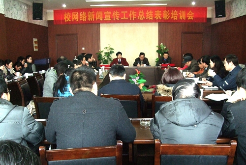 3月14日上午, 2011年校网络宣传工作总结表彰培训会在校学术会议中心举行。校纪委书记张国宝出席会议并讲话,校党委宣传部部长赵保平、副部长夏家龙以及各部门、学院的通讯员40余人参加了会议。会议由赵保平主持。