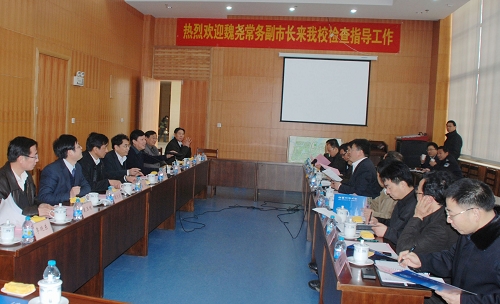 在座谈会上,兰玉杰首先代表学校对魏尧一行来校调研指导工作表示热烈欢迎和衷心感谢,对市政府帮助解决有关事项、支持学校建设和发展表示热切的期待。校长李家新简要介绍了学校发展情况和当前重点工作,重点汇报了兴安村征迁等需要市政府帮助解决的有关事项。副校长陈润就相关工作做了补充汇报。与会市政府有关部门负责人就上述事项的实施情况作了说明。