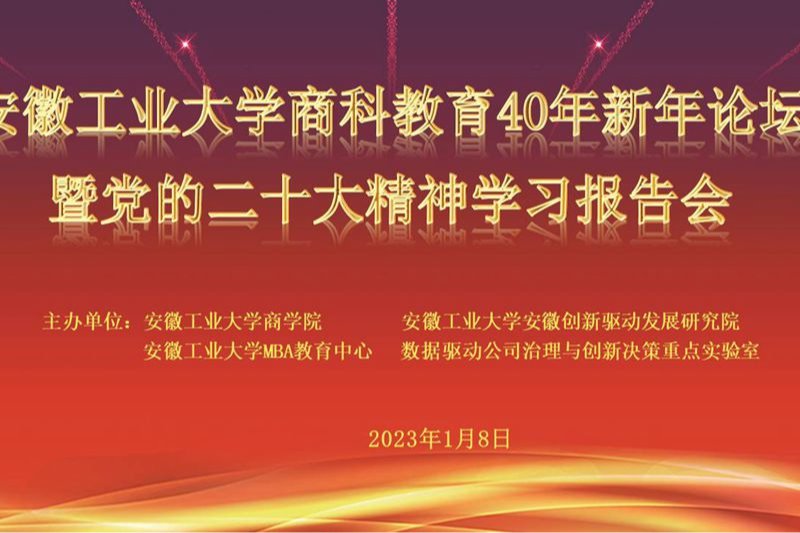 1月8日下午,商学院、安徽工业大学MBA教育中心、安徽工业大学创新驱动发展研究院、数据驱动公司治理与创新决策重点实验室联合举办商科教育40年新年论坛暨党的二十大精神学习报告会。校党委常委、副校长王先柱出席活动。商科教育行业专家学者、商学院师生、校友共5000余人通过线上、线下的方式参加活动。王先柱在致辞中,对参加本次论坛的专家、校友表示热烈欢迎和衷心感谢,从历史沿革、学科特色、人才培养、科学研究等方面介绍...