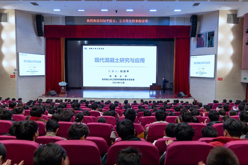 12月14日下午,中国工程院院士、东南大学首席教授刘加平来校作“现代混凝土研究与理论”专题报告。建筑工程学院党委书记张虎主持报告会,600余名师生代表现场聆听。刘加平院士从材料组成、微观结构、宏观性能等方面,系统阐述了现代混凝土在力学性能、耐久性与可持续发展等方面的最新研究成果与理论进展,系统梳理了现代混凝土的研究热点,如高性能混凝土、自修复混凝土的开发与应用,结合理论模型与实验数据,深入分析了不同工...