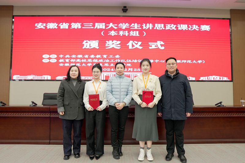 12月25日,由中共安徽省委教育工委主办,教育部高校思想政治工作队伍培训研修中心(安徽师范大学)、安徽师范大学马克思主义学院承办的安徽省第三届大学生讲思政课决赛在芜湖举行。经过激烈的现场角逐,商学院麻青青同学团队荣获特等奖,马克思主义学院王雨晴同学团队荣获二等奖。陆春晖、苗云飞、许屹山荣获优秀指导教师。本次比赛以“七十五载薪火传承 千秋伟业奋斗有我”为主题,分为初赛、片区赛和决赛三个阶段。参赛团队围...