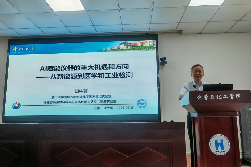 7月1日,中国科学院田中群院士应邀作“AI赋能仪器的重大机遇和方向——从新能源到医学和工业检测”专题报告。校党委副书记、校长曾杰主持,冶金工程学院、材料科学与工程学院、化学与化工学院、计算机科学与技术学院师生100余人现场聆听。田中群院士从AI赋能仪器的重大机遇和方向展开,围绕AI会改变科技与产业、为何要开拓新能源新赛道、AI赋能科学仪器新赛道、医学设备检测初探等方面进行阐述,结合团队在AI驱动的电化学工况下“检测-解析-控制”三模块的实时全闭环的未来研究范式、AI赋能表面增强...