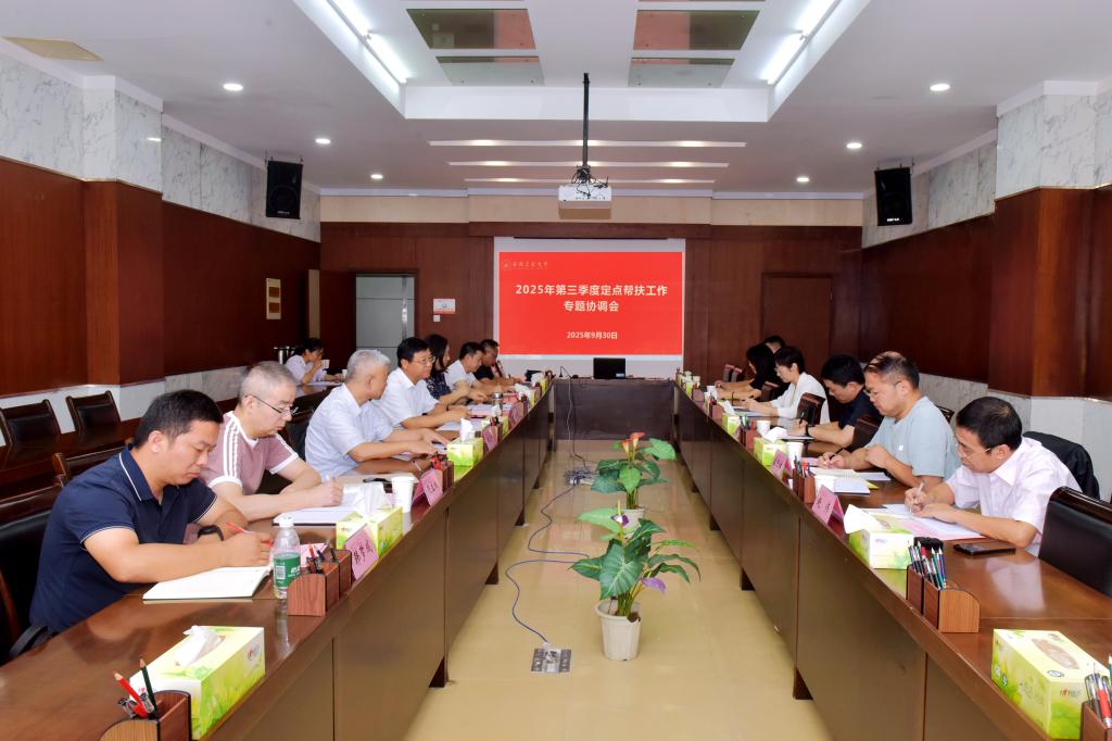 9月30日上午,学校在佳山校区学术会议中心组织召开2025年第三季度定点帮扶工作专题协调会。校党委副书记王俊出席,马鞍山市体育局、共青团马鞍山市委员会、和县人民法院、郑蒲港新区自然资源和规划分局、马鞍山昌胜建筑安装有限公司、中国大地保险马鞍山中心支公司等六家帮扶团组单位负责人参加。会议学习了习近平总书记向全国广大农民和工作在“三农”战线上的同志们致以节日祝贺和诚挚问候的重要讲话精神,传达了全省巩固拓展脱贫攻坚成果同乡村振兴有效衔接工作会议精神,并就落实省委、市委农村工作领导小组...